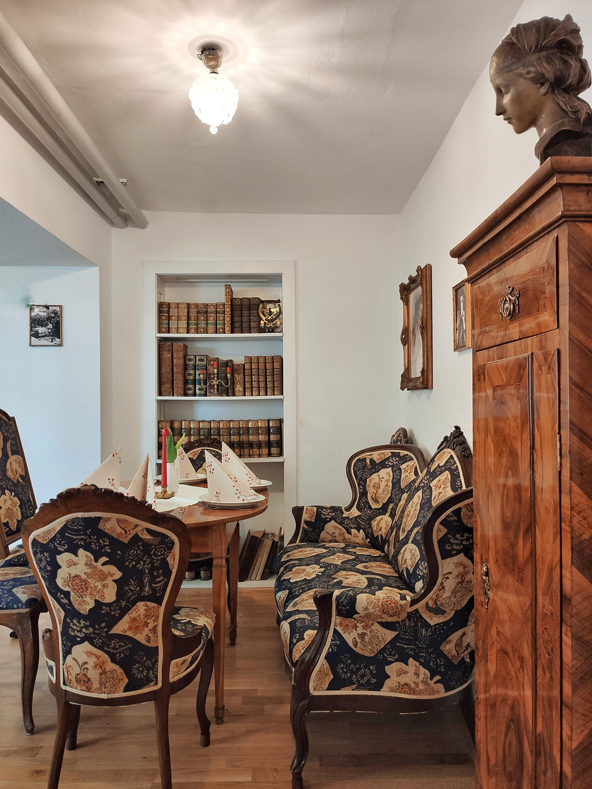 Access to the main entrance is via one tread. We regret that there is no barrier-free access to the historic cabinet rooms of the Museum Villa Rot. Inside,